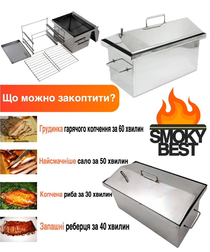 Отримайте від 4 до 15 кг копченого м'яса За 20 хвилин вдома або на вулиці за допомогою домашньої коптильні "Smoky Best"